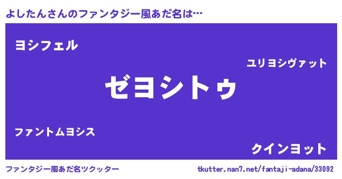 | 男性向けラノベタイトル風あだ名 | 『Re:よしたんから始める異世界生活』 |