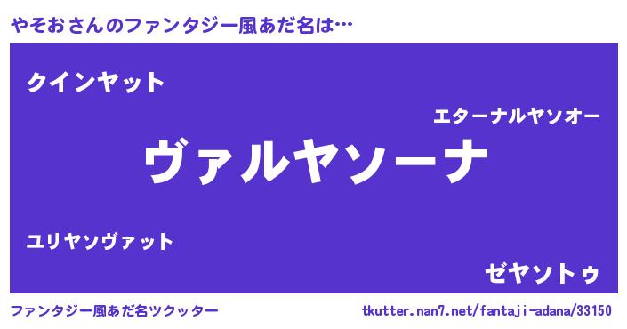 | 男性向けラノベタイトル風あだ名 | 『この素晴らしい世界にやそおを!』 |
