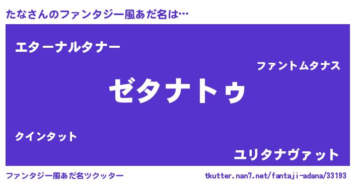 | ポケモン風あだ名 | 『タナセウス』『タナゴンZ』『ヒタナ』 |