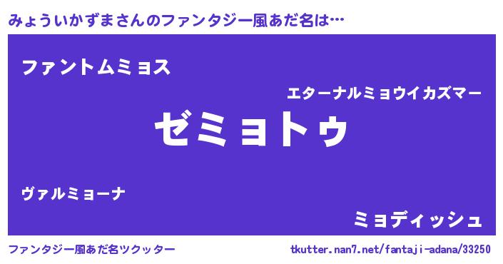 | 肩書あだ名 | 『みょういかずま閣下』 |