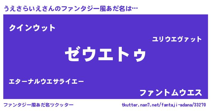 | ヒーロー風カッコイイあだ名 | 『ウルトラ戦士ウエサライエ』 |