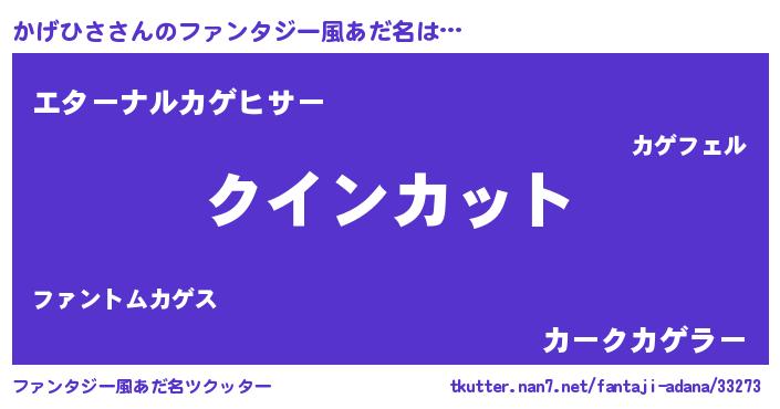 | ヘコむあだ名 | 『豆乳』『かげっふぃ~』『かげっ子』 |