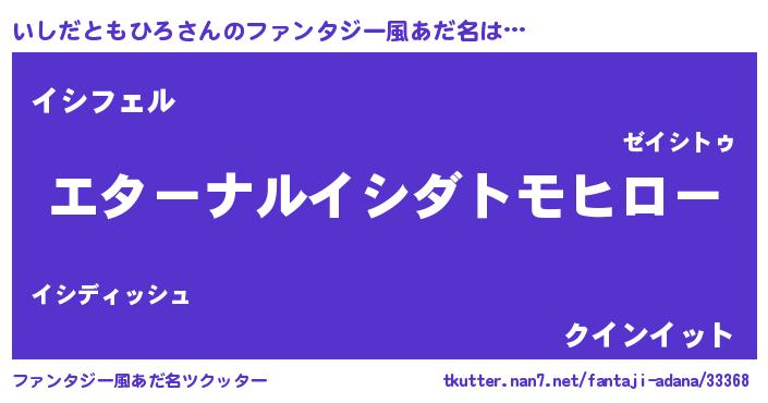 | 男性向けラノベタイトル風あだ名 | 『やはりいしだともひろの青春ラブコメはまちがっている 』 |