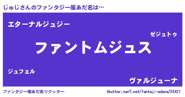 | 男性向けラノベタイトル風あだ名 | 『ダンジョンにじゅじを求めるのは間違っているだろうか』 |