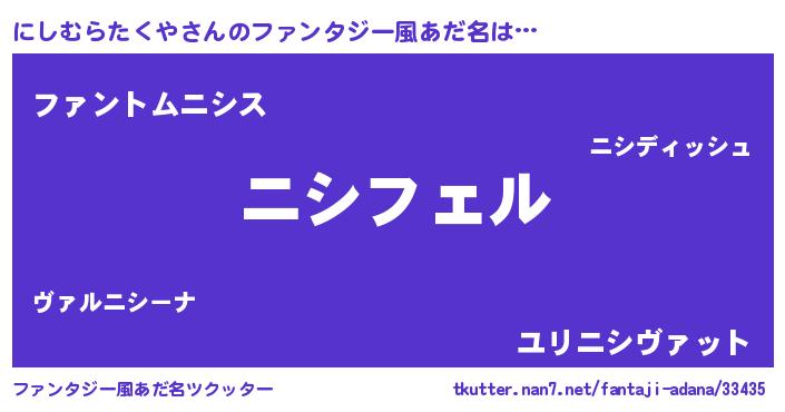 | 肩書あだ名 | 『にしむらたくや社長』 |