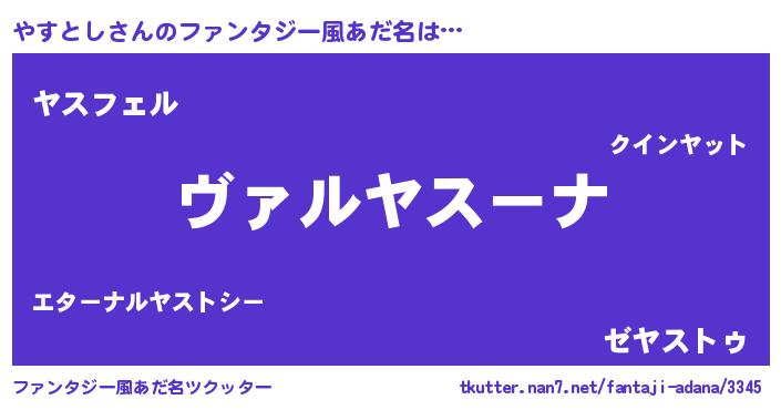 | 男性向けラノベタイトル風あだ名 | 『魔弾の王とやすとし』 |