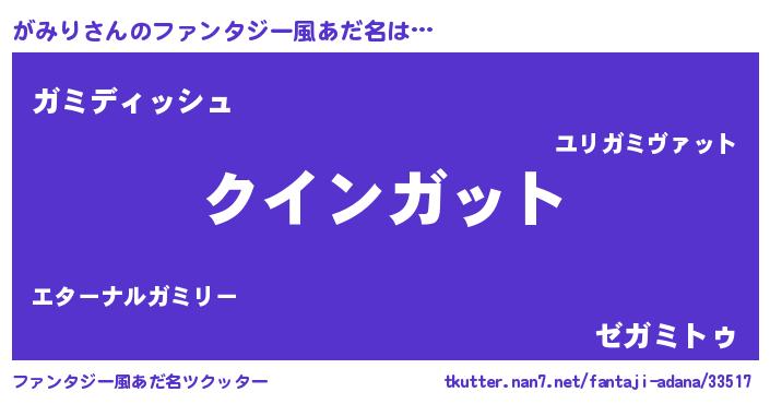 | 男性向けラノベタイトル風あだ名 | 『おまえをオタクにしてやるから、俺をがみりにしてくれ! 』 |