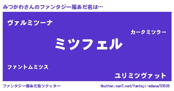 | 男性向けラノベタイトル風あだ名 | 『みつかわの憂鬱』『魔弾の王とみつかわ』 |