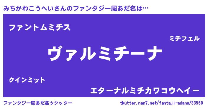 | 男性向けラノベタイトル風あだ名 | 『この素晴らしい世界にみちかわこうへいを!』 |