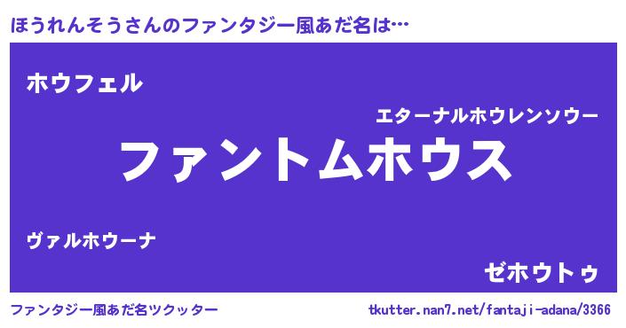 | 男性向けラノベタイトル風あだ名 | 『ほうれんそうの嫁は女の子じゃないと思った?』 |