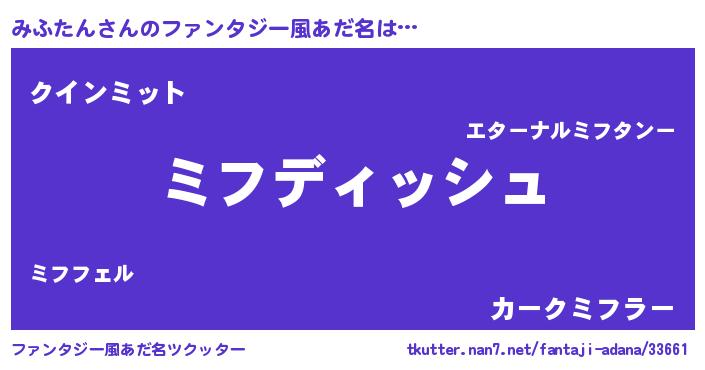 | ヘコむあだ名 | 『みふたん(小並感)』『酢こんぶ』 |