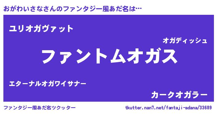 | 男性向けラノベタイトル風あだ名 | 『おがわいさなの嫁は女の子じゃないと思った?』 |