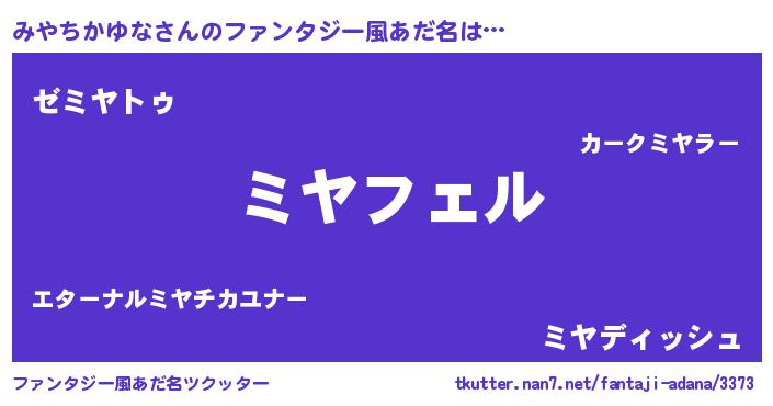 | ヒーロー風カッコイイあだ名 | 『スーパーミヤチカユナ』『暗黒騎士ミヤ』 |