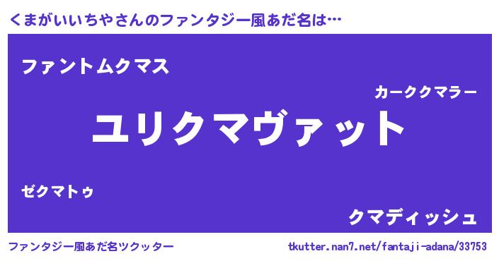 | 男性向けラノベタイトル風あだ名 | 『転生したらくまがいいちやだった件』 |