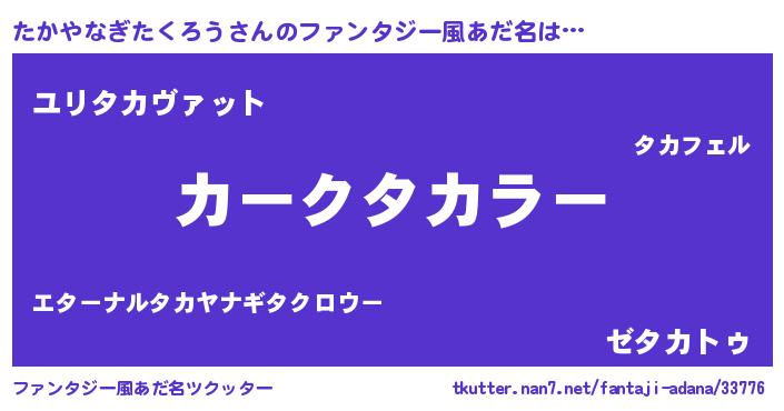 | ヒーロー風カッコイイあだ名 | 『最強戦士タカヤナギタクロウ』 |