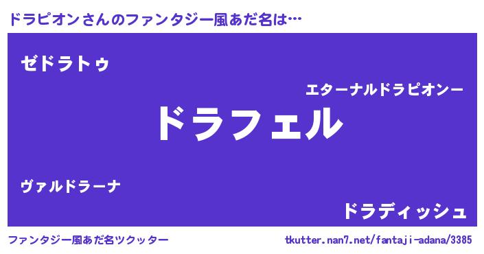 | ヘコむあだ名 | 『ドラふぇ~』『ドラピオン(遠い目)』 |