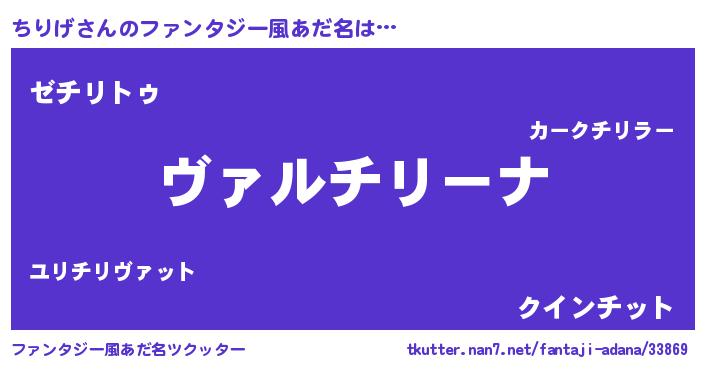| 男性向けラノベタイトル風あだ名 | 『この素晴らしい世界にちりげを!』 |