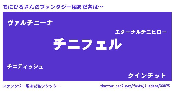 | 男性向けラノベタイトル風あだ名 | 『チニヒロアートオンライン』 |