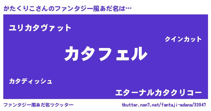 | ヒーロー風カッコイイあだ名 | 『スーパーカタクリコ』『ネオカタクリコ』 |