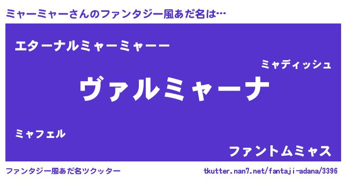 | 意味不明あだ名 | 『住所不定無職ミャーミャー(12歳)』 |