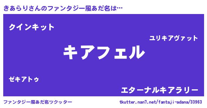 | 意味不明あだ名 | 『ペロリンきあらり』『自称きあらり』 |
