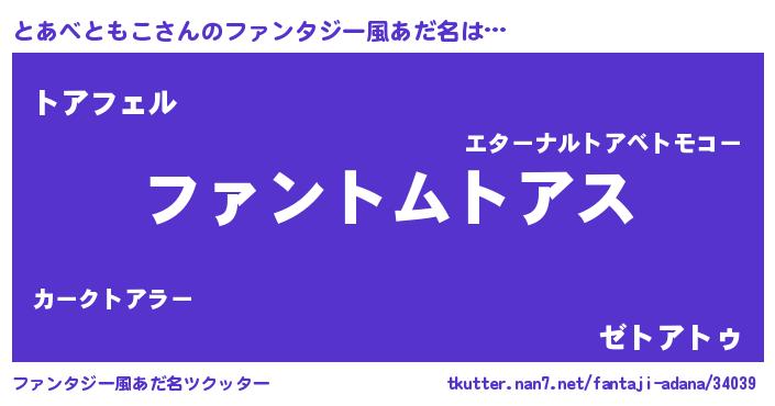 | ヒーロー風カッコイイあだ名 | 『魔戒騎士トア』『スーパートアベトモコ』 |