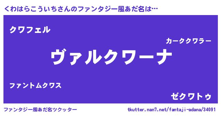 | 男性向けラノベタイトル風あだ名 | 『魔弾の王とくわはらこういち』 |