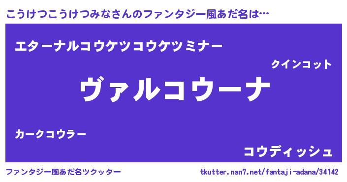 | 男性向けラノベタイトル風あだ名 | 『魔弾の王とこうけつこうけつみな』 |