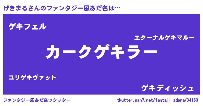 | 欧米人風あだ名 | 『げきまる・ステッグマイヤー』 |