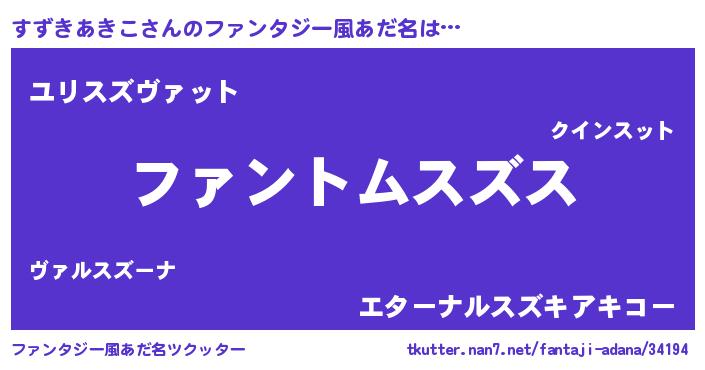 | 男性向けラノベタイトル風あだ名 | 『すずきあきこの嫁は女の子じゃないと思った?』 |