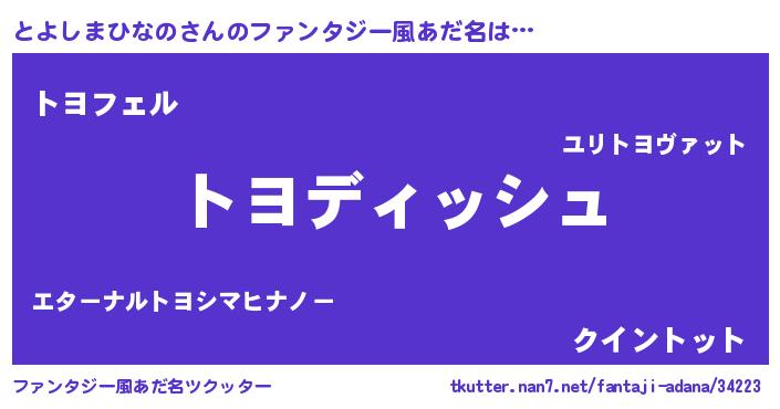 | ヘコむあだ名 | 『とよしまひなの(笑)』『とよにゅー』 |