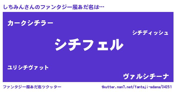 | 意味不明あだ名 | 『ペロリンしちみん』『永久保存しちみん』 |