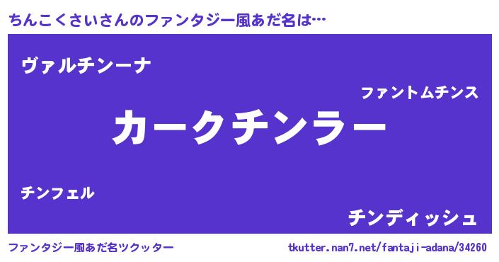| 意味不明あだ名 | 『住所不定無職ちんこくさい(95歳)』 |