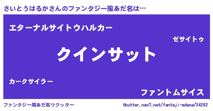 | 男性向けラノベタイトル風あだ名 | 『おまえをオタクにしてやるから、俺をさいとうはるかにしてくれ! 』 |