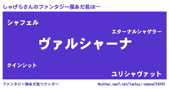 | 男性向けラノベタイトル風あだ名 | 『魔弾の王としゃげら』『しゃげらの憂鬱』 |
