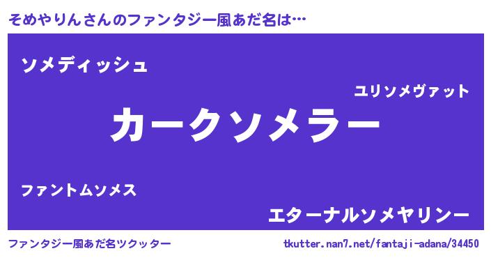| 胡散臭い通販商品みたいなあだ名 | 『来世でも幸せになれる健康食品…その名も「そめやりん」』 |