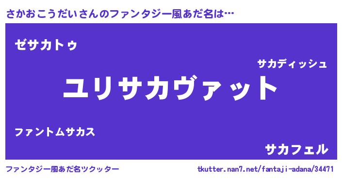 | 男性向けラノベタイトル風あだ名 | 『さかおこうだい~年齢イコール彼女いない歴の魔法使い~』 |