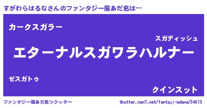 | 伝説のあだ名 | 『最強の忍者すがわらはるな』 |