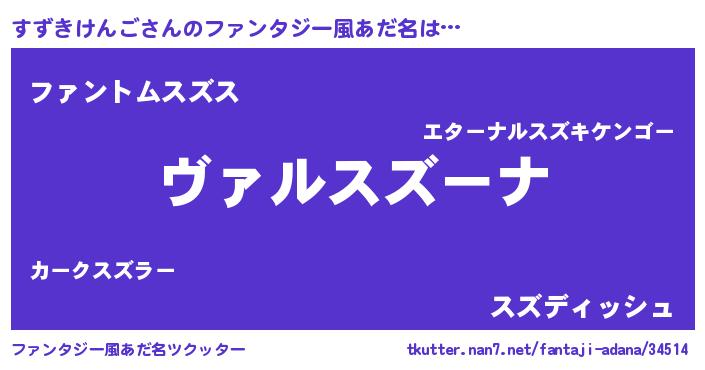 | 男性向けラノベタイトル風あだ名 | 『魔弾の王とすずきけんご』 |