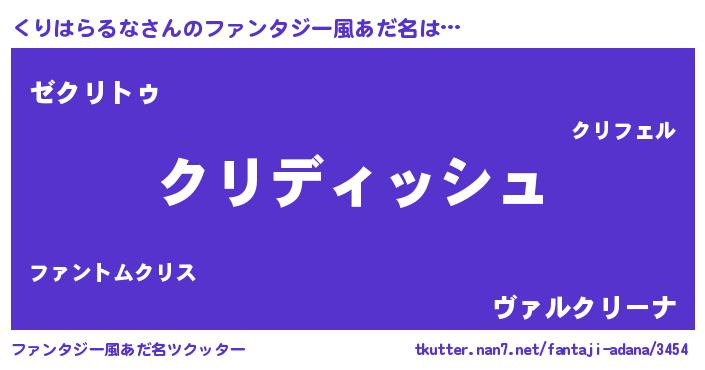 | ヒーロー風カッコイイあだ名 | 『ネオクリハラルナ』『仮面クリダー』 |