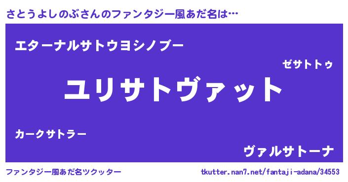 | 男性向けラノベタイトル風あだ名 | 『サトウヨシノブスレイヤー』 |