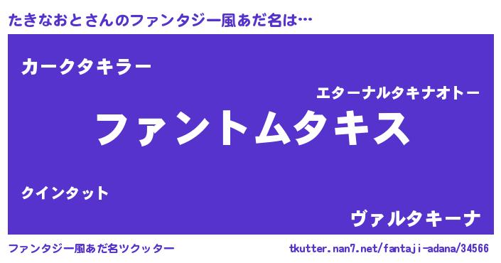| 男性向けラノベタイトル風あだ名 | 『たきなおとの嫁は女の子じゃないと思った?』 |