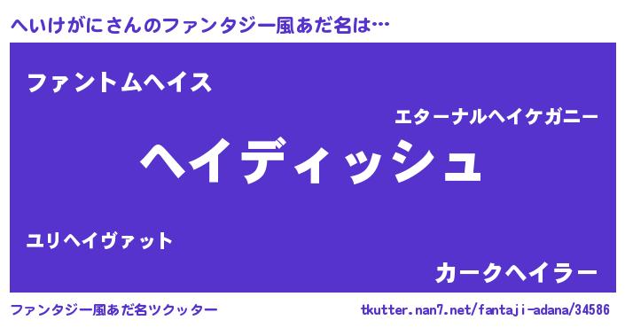 | 意味不明あだ名 | 『永久保存へいけがに』『自称へいけがに』 |