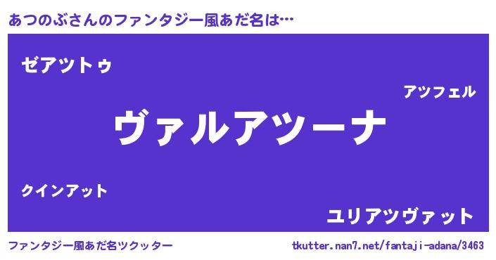 | 男性向けラノベタイトル風あだ名 | 『魔弾の王とあつのぶ』『あつのぶの憂鬱』 |