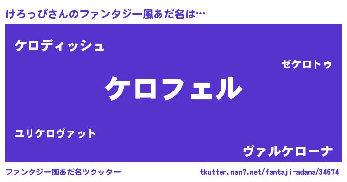 | ヘコむあだ名 | 『けろにゅー』『けろっぴ(遠い目)』 |