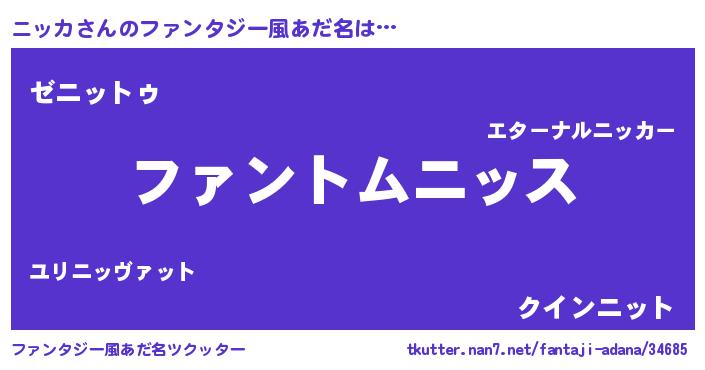| 男性向けラノベタイトル風あだ名 | 『ダンジョンにニッカを求めるのは間違っているだろうか』 |
