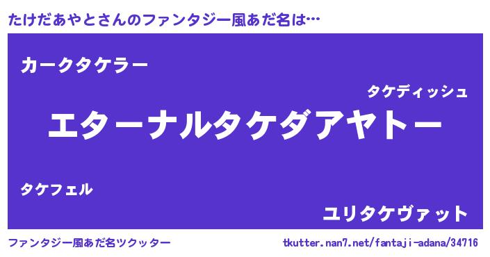 | 男性向けラノベタイトル風あだ名 | 『はたらくたけだあやとさま!』 |