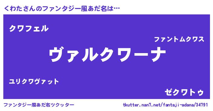 | 男性向けラノベタイトル風あだ名 | 『この素晴らしい世界にくわたを!』 |