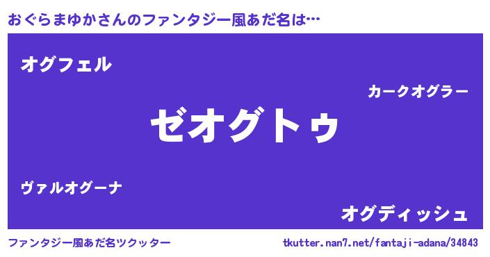 | 男性向けラノベタイトル風あだ名 | 『Re:おぐらまゆかから始める異世界生活』 |