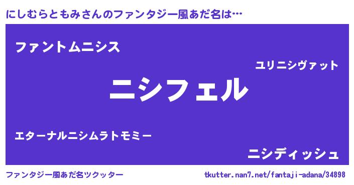 | ポケモン風あだ名 | 『ニシチュウ』『ヒニシムラトモミ』 |